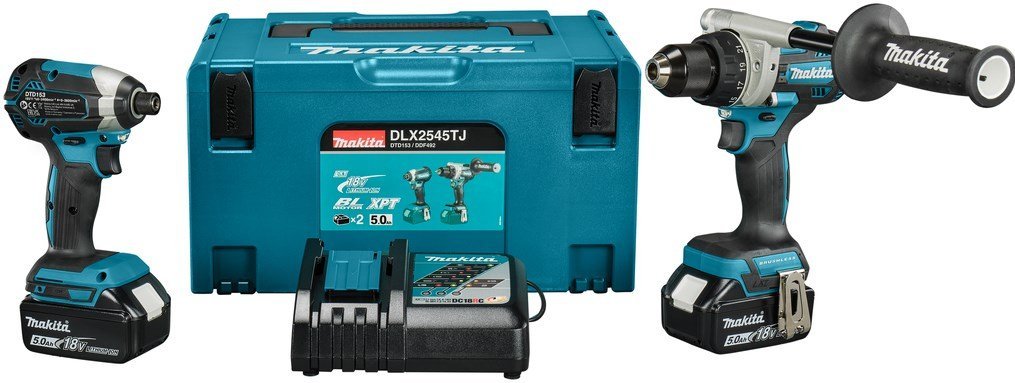 Makita DLX2545TJ 18v Combiset DDF492 Boor-/schroefmachine + DTD153 Slagschroevendraaier (2x 5.0Ah en lader)
