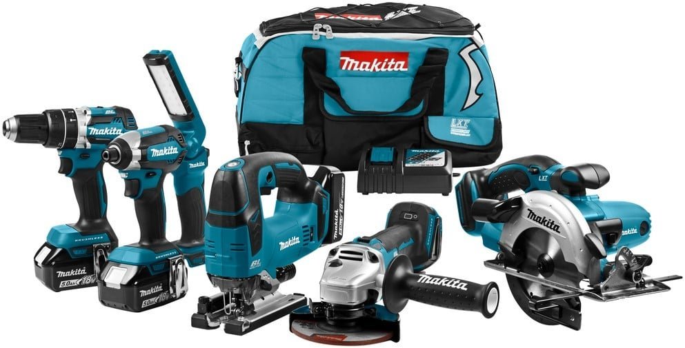 Makita DLX6082T Comboset 18v Li-ion met 3x 5.0Ah accu’s – voor (klop)boren, (slag)schroeven, zagen en slijpen